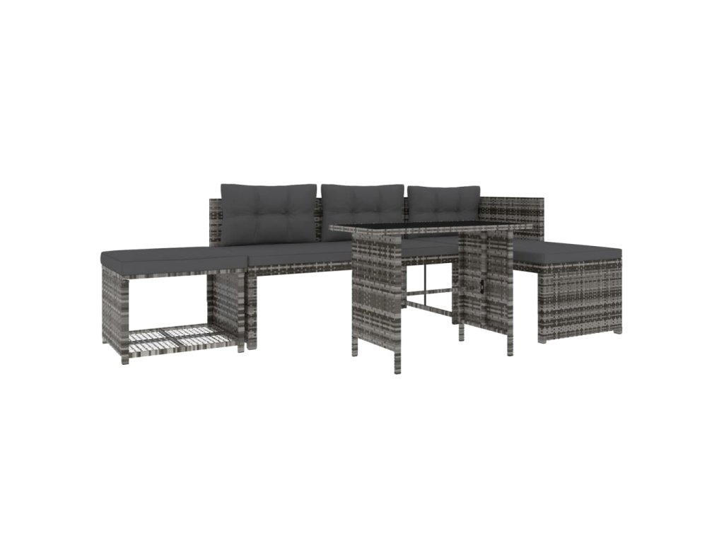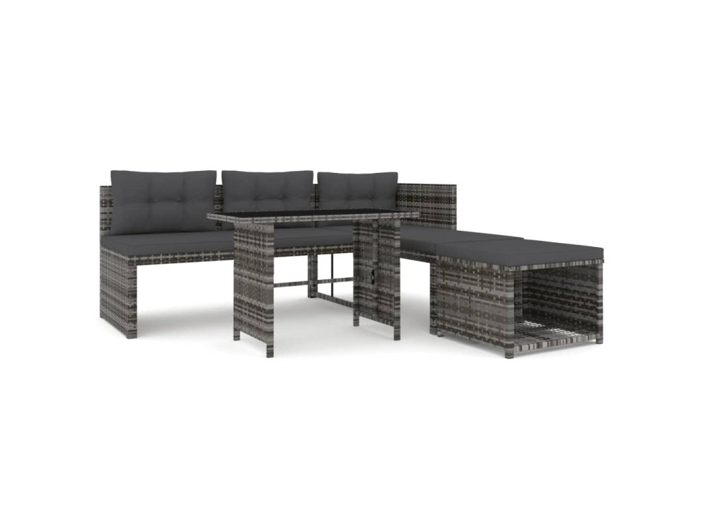 vidaXL 4-dielna záhradná jedálenská súprava s vankúšmi sivá polyratan