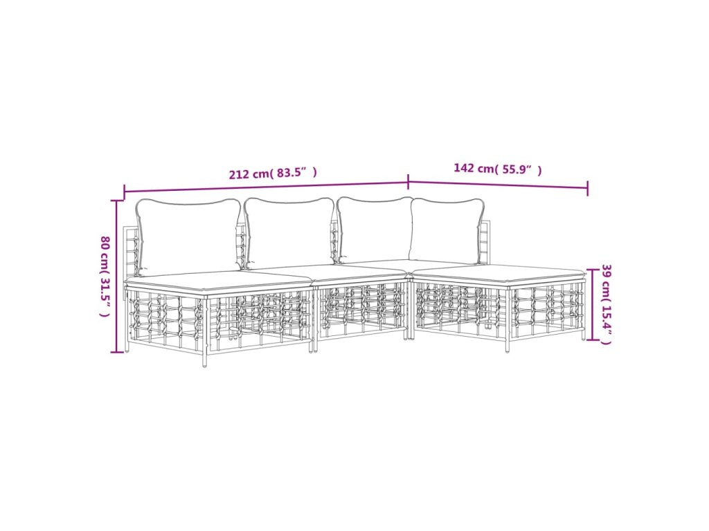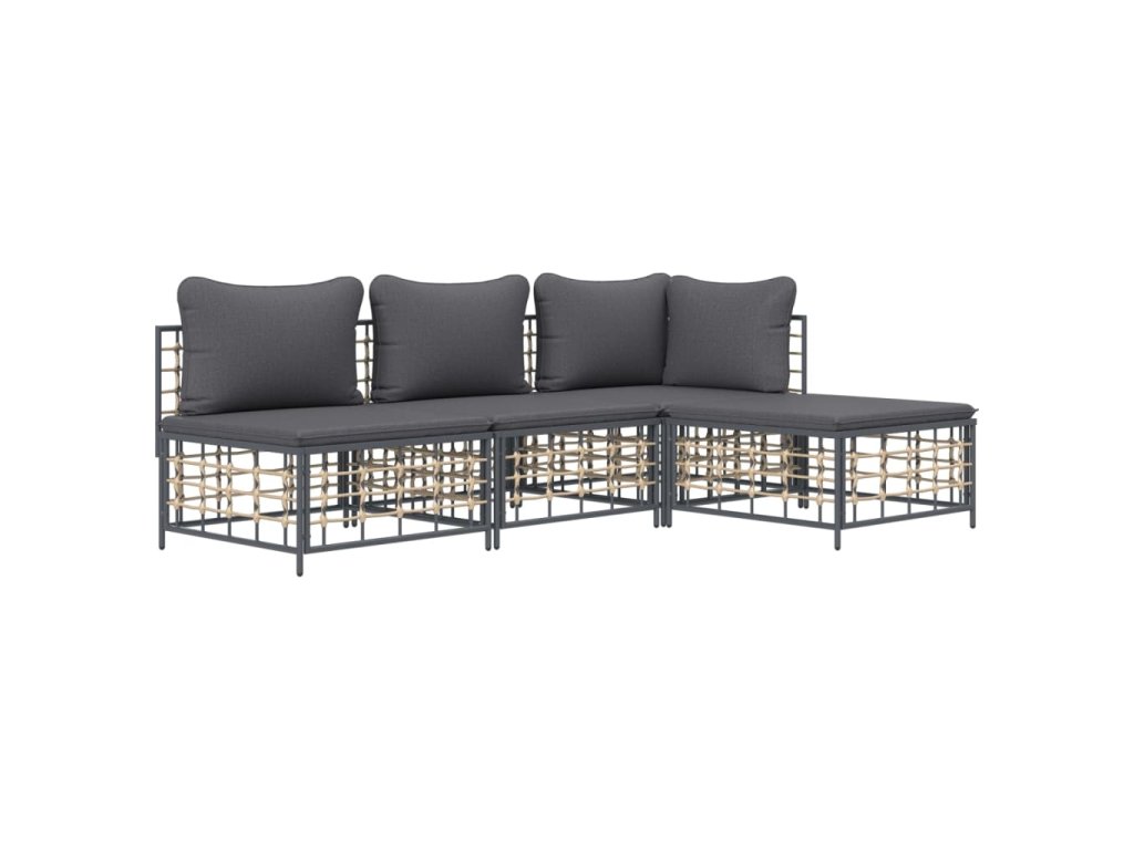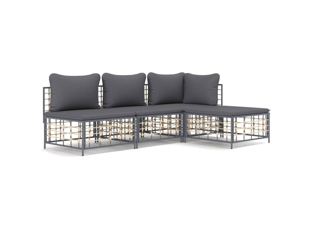 vidaXL 4-dielna záhradná sedacia sada s vankúšmi antracitová polyratan