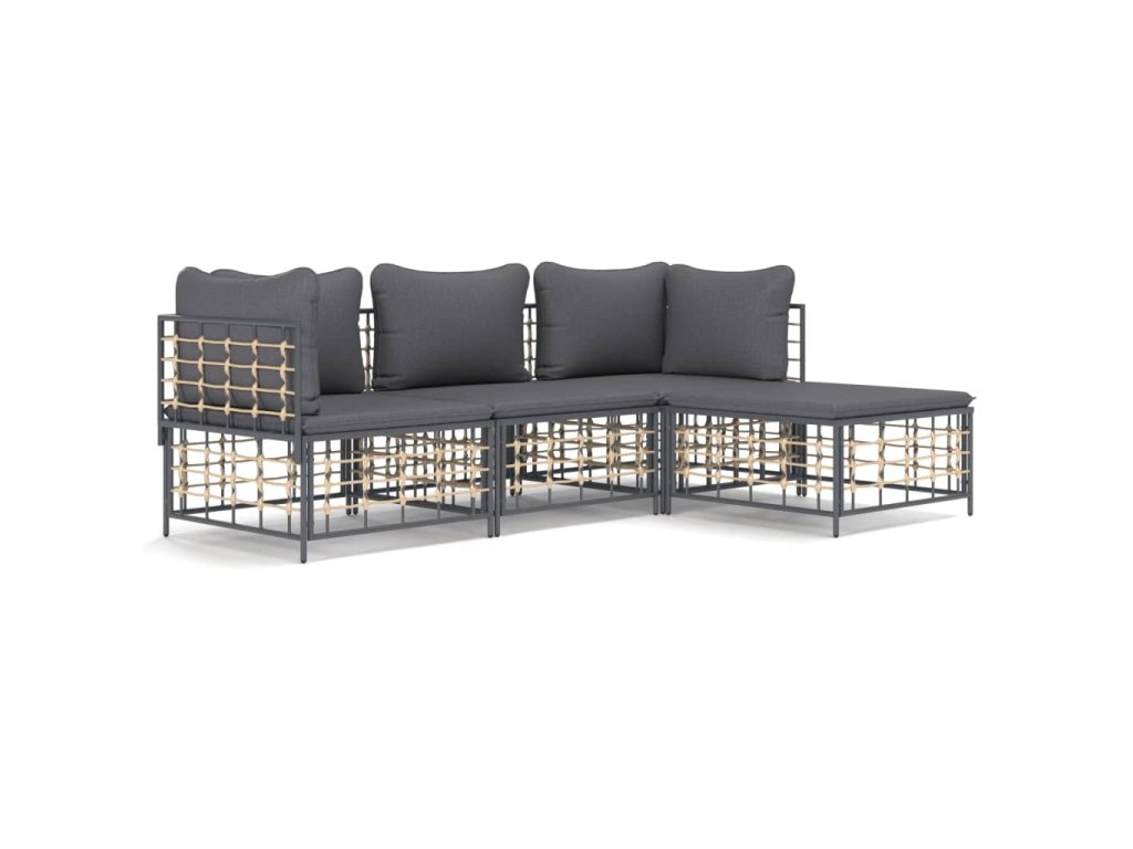 vidaXL 4-dielna záhradná sedacia sada s vankúšmi antracitová polyratan