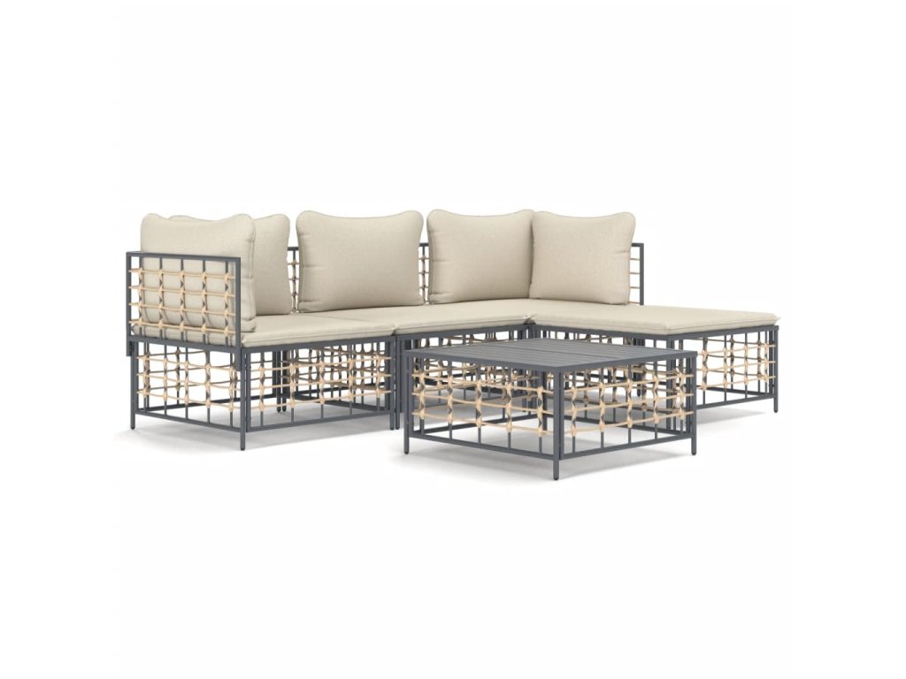 vidaXL 4-dielna záhradná sedacia sada s vankúšmi antracitová polyratan