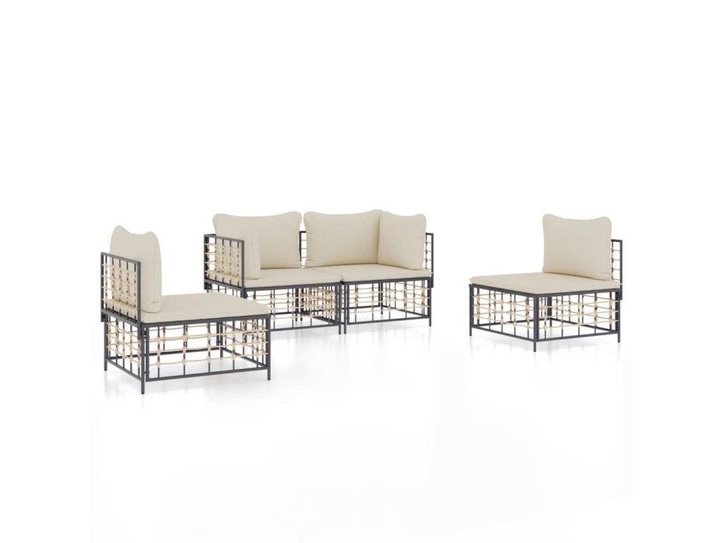 vidaXL 4-dielna záhradná sedacia sada s vankúšmi antracitová polyratan