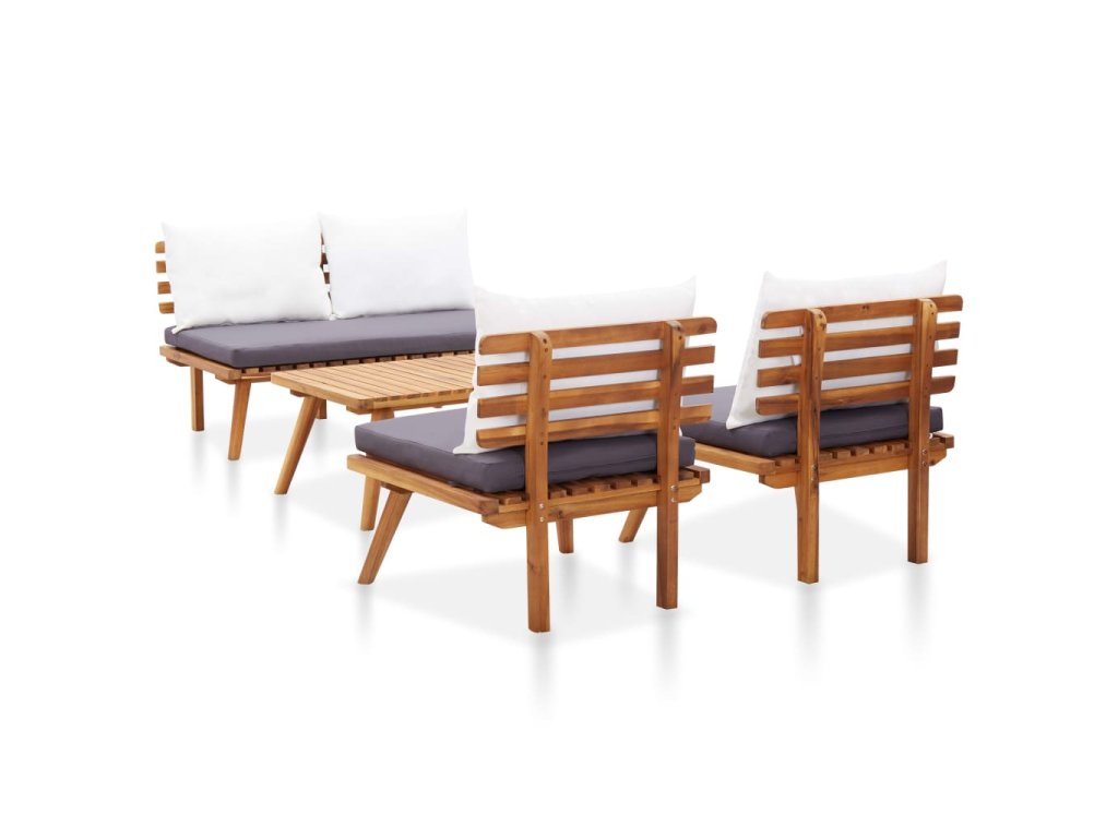Tento záhradný nábytok je vyrobený z masívneho akáciového dreva, tropického tvrdého dreva, ktoré je odolné voči poveternostným vplyvom a trvácne. Táto súprava sa dodáva aj s pohodlnými sedačkami a vankúšmi za chrbát. Poťahy na vankúše sú odnímateľné a dajú sa oprať. Záhradný nábytok si vyžaduje montáž.