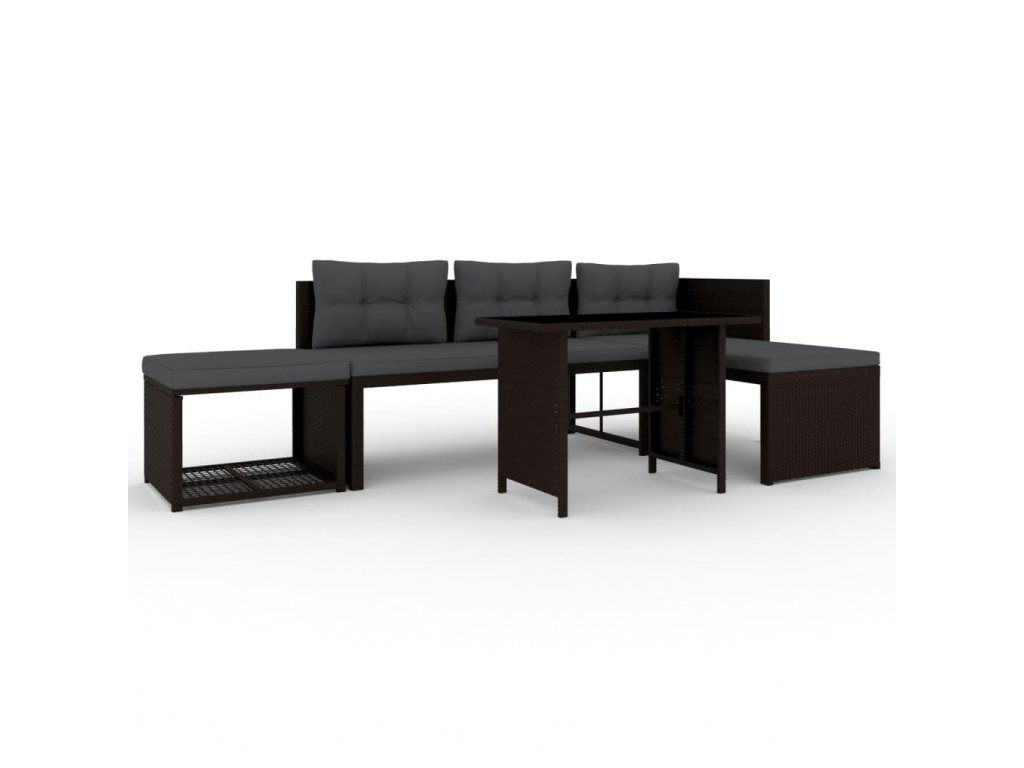 vidaXL 4-dielna záhradná sedacia súprava, polyratan, hnedá