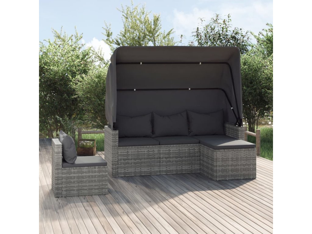 vidaXL 4-dielna záhradná sedacia súprava a vankúše polyratan sivá
