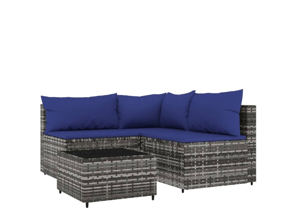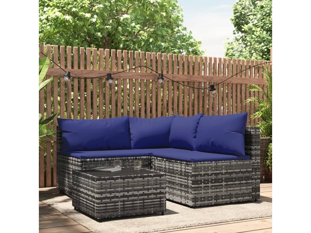 vidaXL 4-dielna záhradná sedacia súprava a vankúše polyratan sivá