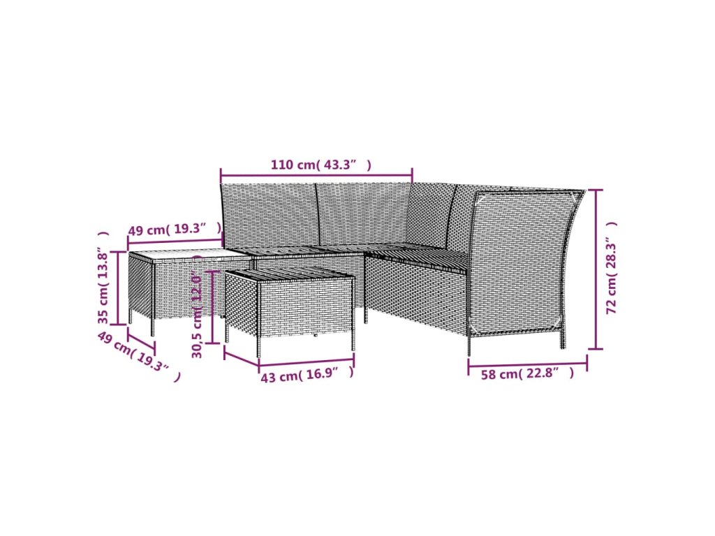 vidaXL 4-dielna záhradná sedacia súprava a vankúše polyratan sivá