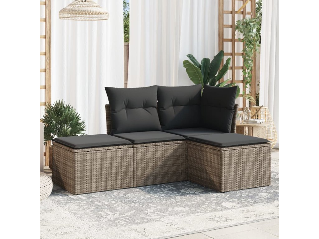 vidaXL 4-dielna záhradná sedacia súprava a vankúše polyratan sivá