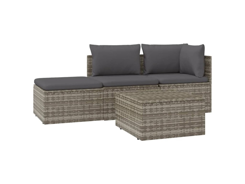 vidaXL 4-dielna záhradná sedacia súprava a vankúše polyratan sivá