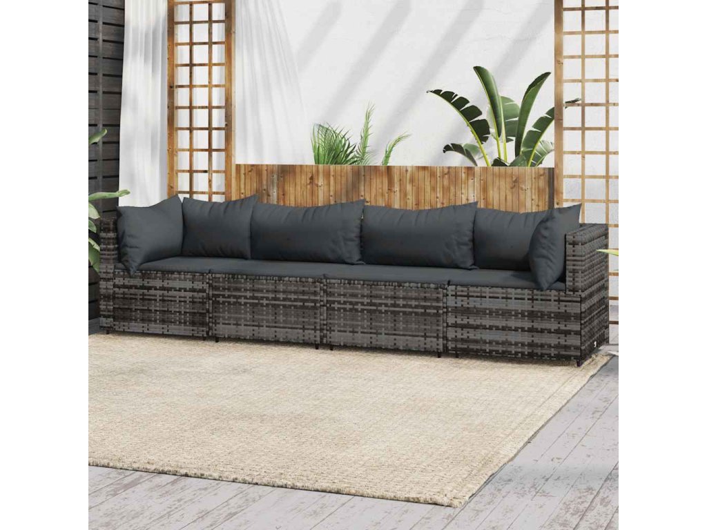 vidaXL 4-dielna záhradná sedacia súprava a vankúše polyratan sivá