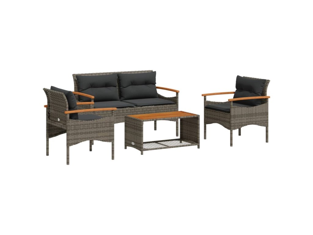 vidaXL 4-dielna záhradná sedacia súprava a vankúše polyratan sivá