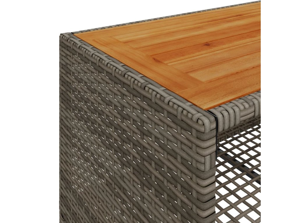- Materiál: PE ratan, práškovaná oceľ, masívne akáciové drevo s olejovým náterom