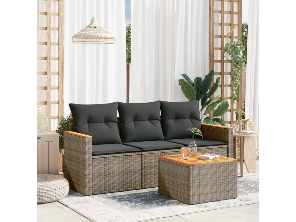 vidaXL 4-dielna záhradná sedacia súprava a vankúše polyratan sivá