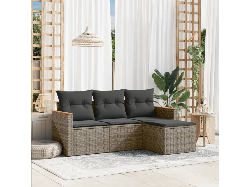 vidaXL 4-dielna záhradná sedacia súprava a vankúše polyratan sivá