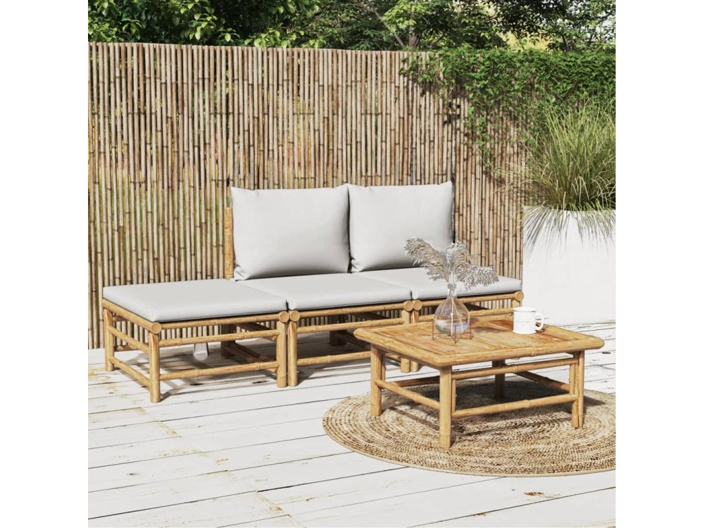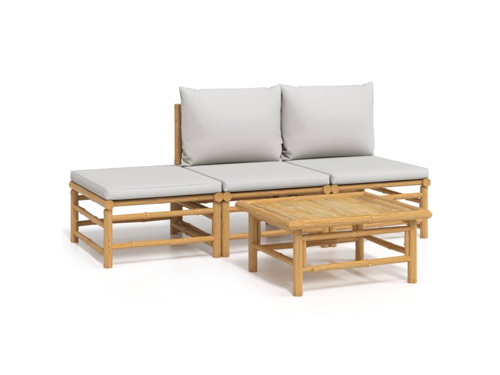 vidaXL 4-dielna záhradná sedacia súprava bledosivé vankúše bambus