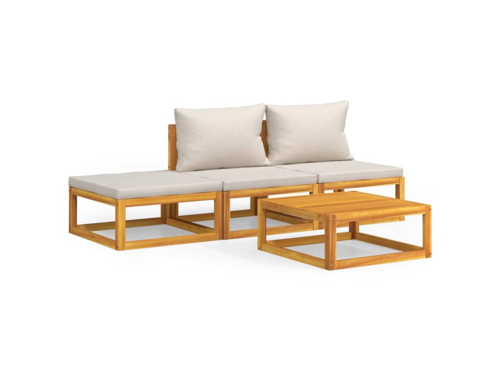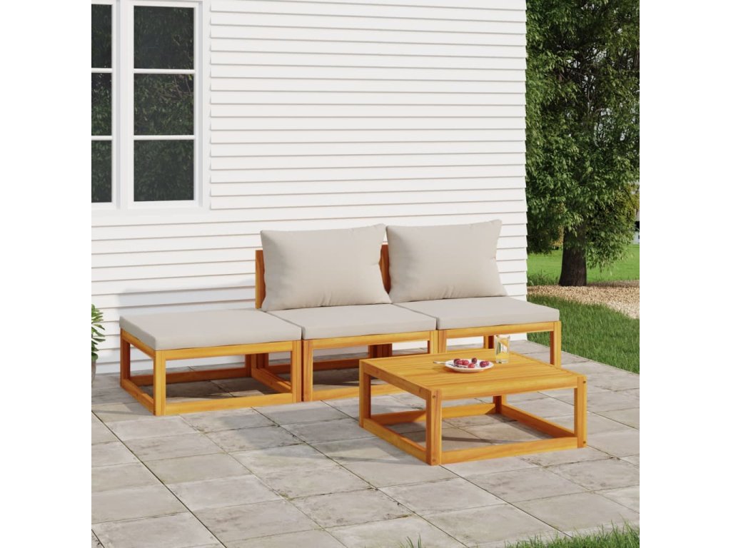 vidaXL 4-dielna záhradná sedacia súprava bledosivé vankúše masív