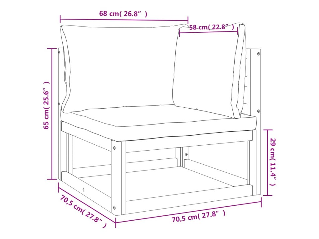 - Rozmery vankúša na sedadlo: 68 x 68 x 6 cm (D x Š x V)