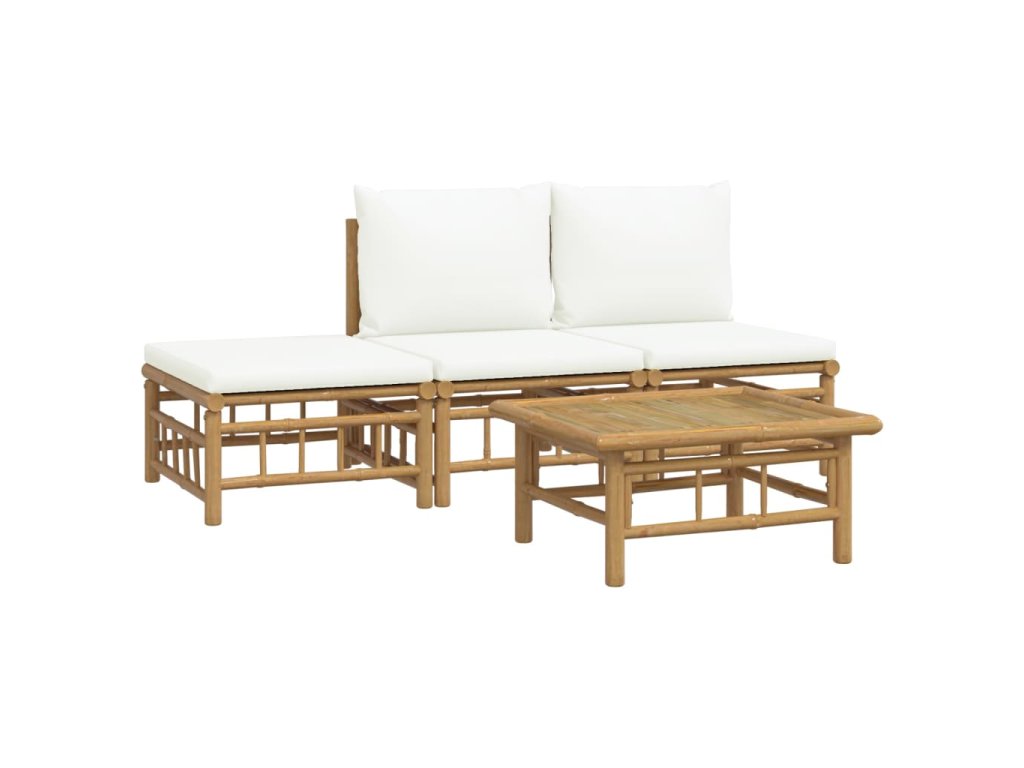 vidaXL 4-dielna záhradná sedacia súprava krémovobiele vankúše bambus