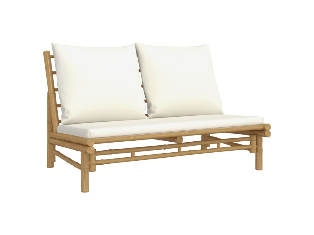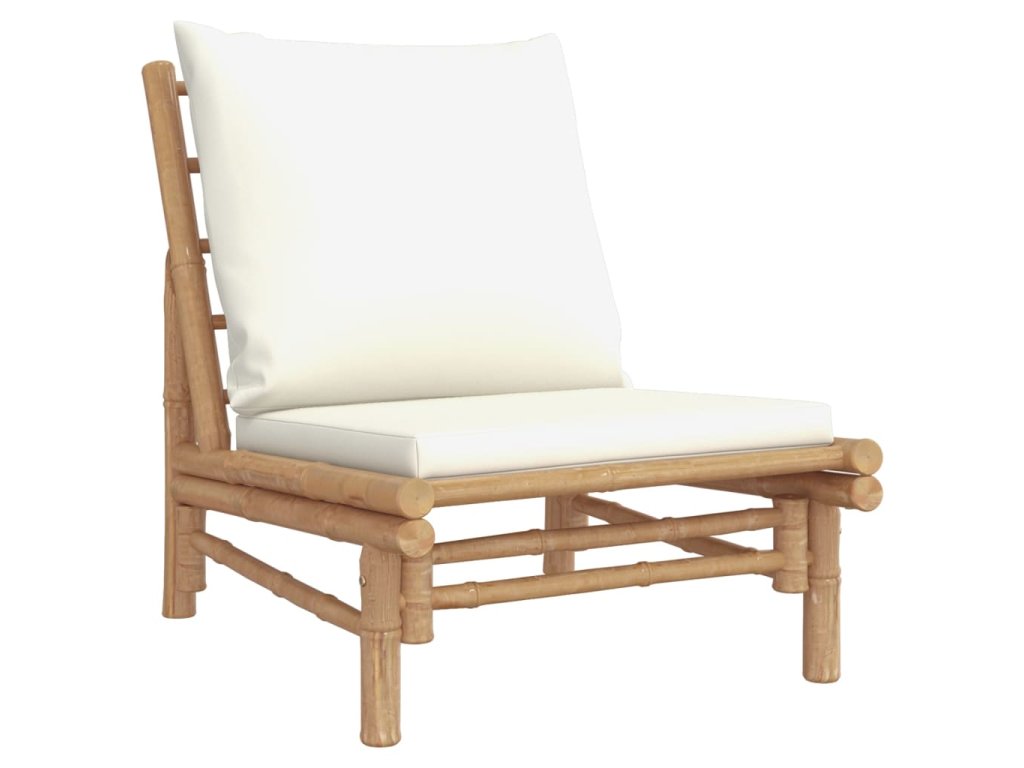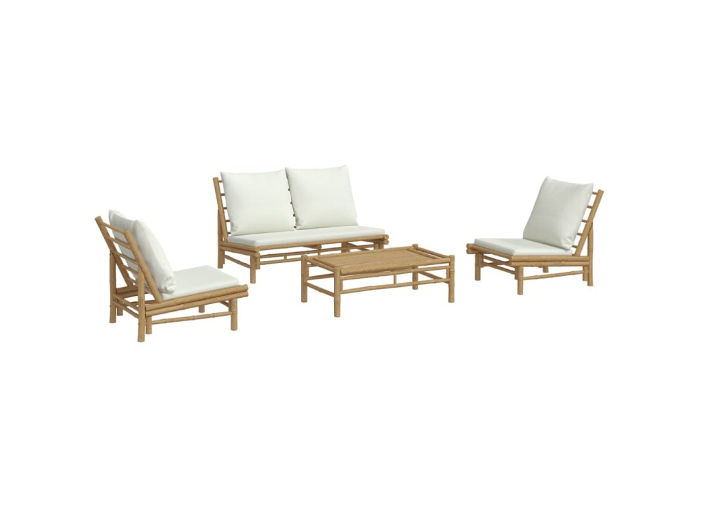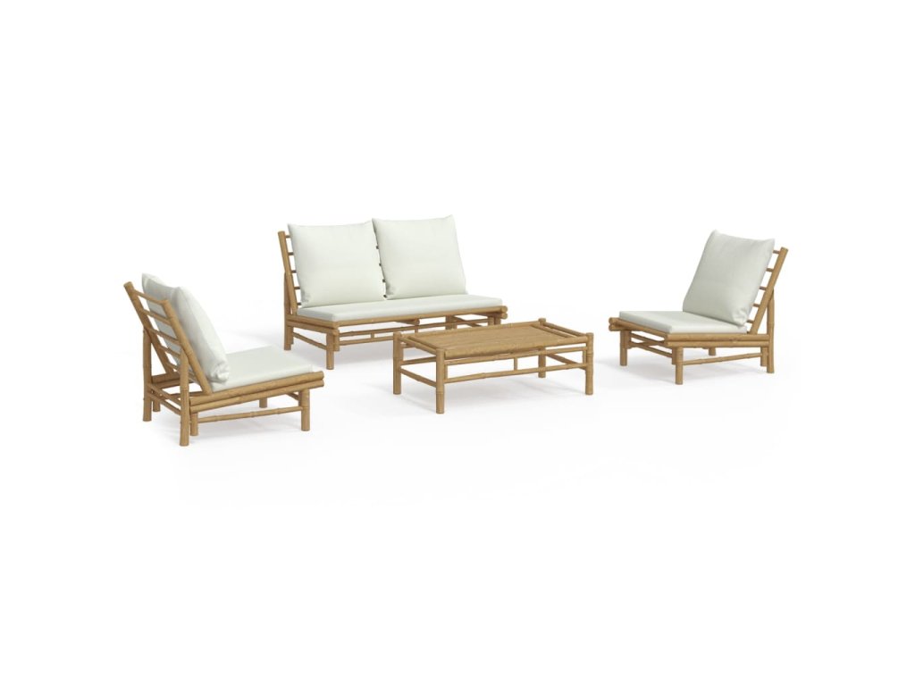 vidaXL 4-dielna záhradná sedacia súprava krémovobiele vankúše bambus