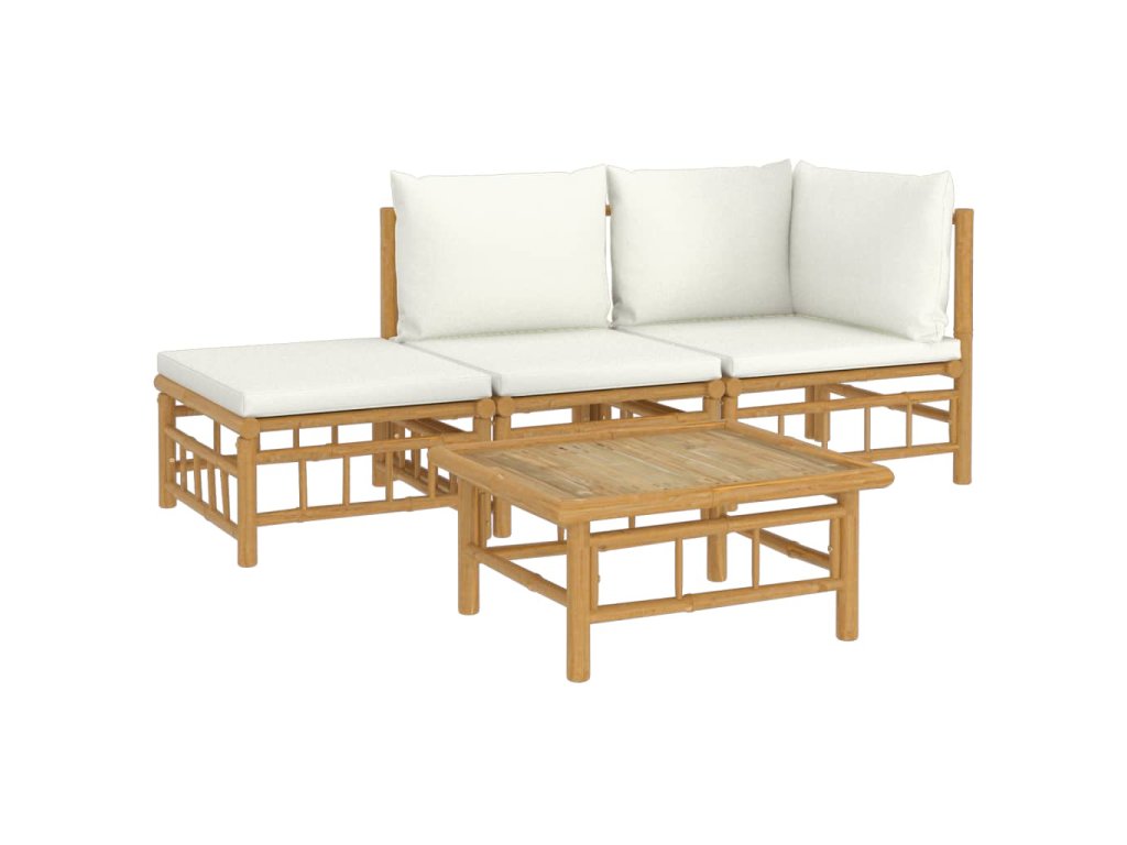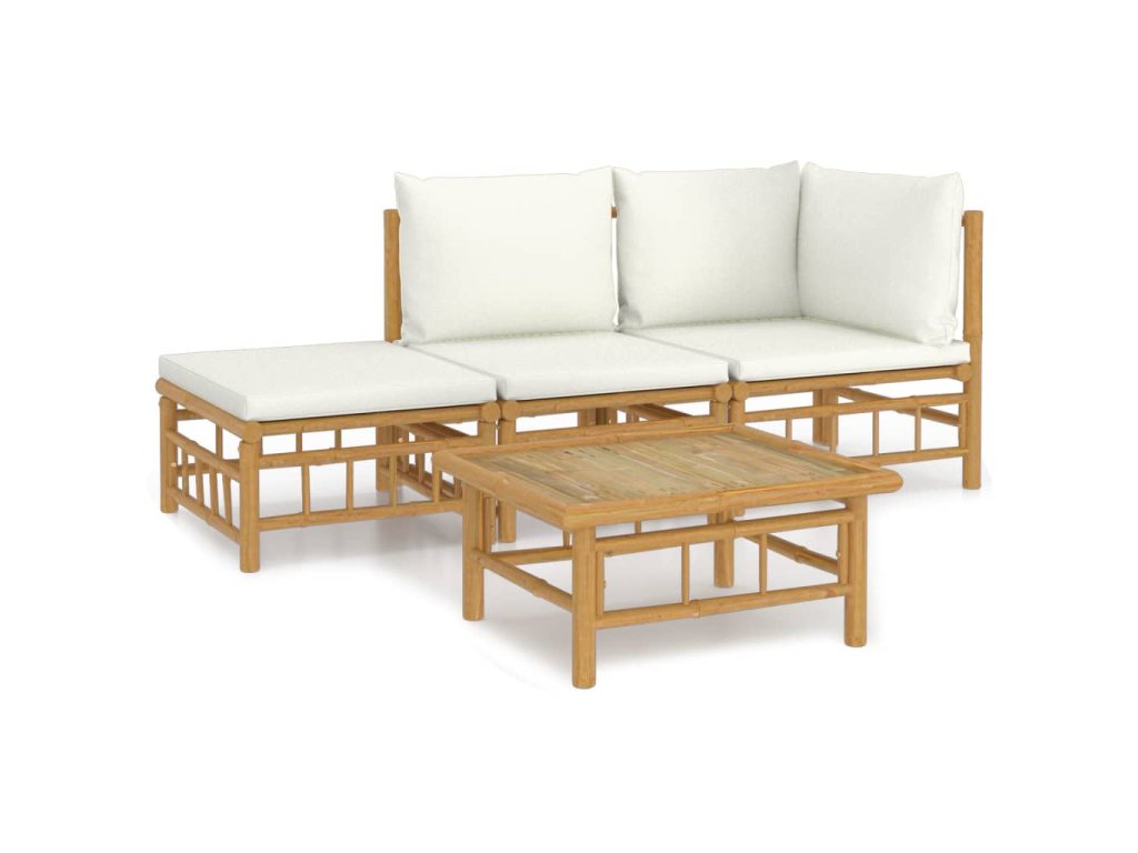 vidaXL 4-dielna záhradná sedacia súprava krémovobiele vankúše bambus