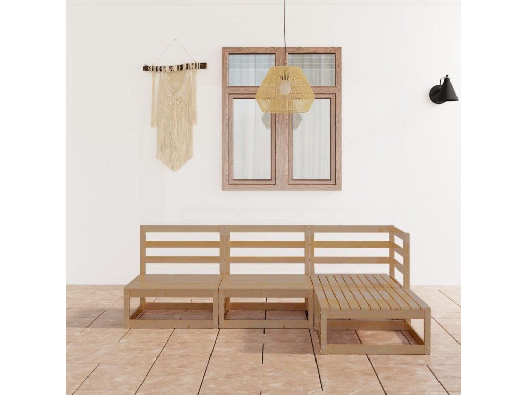 vidaXL 4-dielna záhradná sedacia súprava medovo-hnedá borovicový masív