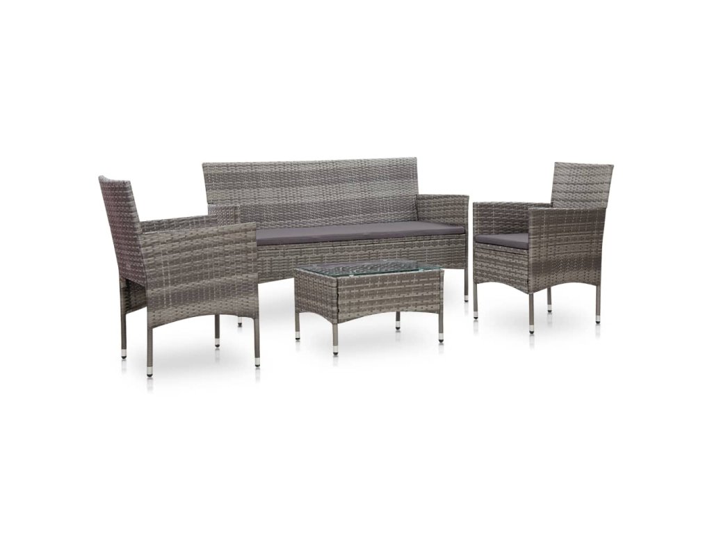 vidaXL 4-dielna záhradná sedacia súprava+podložky, polyratan, sivá