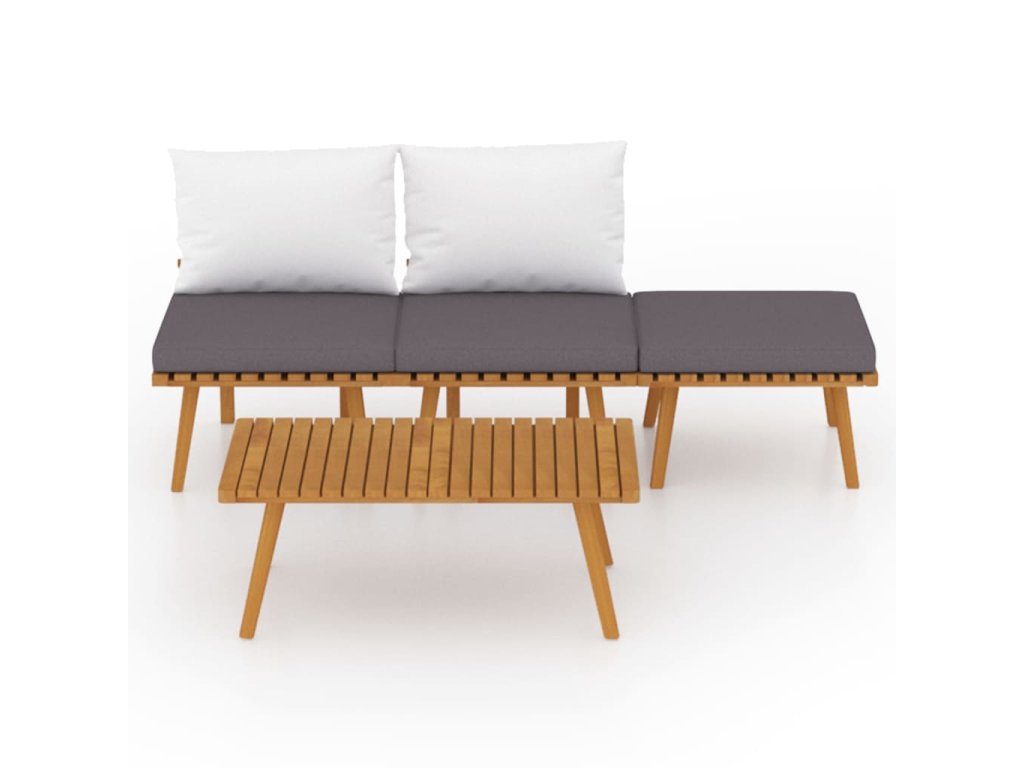 Súprava vonkajšieho nábytku je vyrobená z masívneho akáciového dreva a je odolná voči poveternostným vplyvom a má vysokú životnosť. V kombinácii s hrubo čalúnenými vankúšmi poskytuje táto sedacia súprava maximálne pohodlie. Môžete ju skombinovať s inými modulárnymi segmentmi a vytvoriť si tak svoje vlastné osobné záhradné sedacie súpravy!