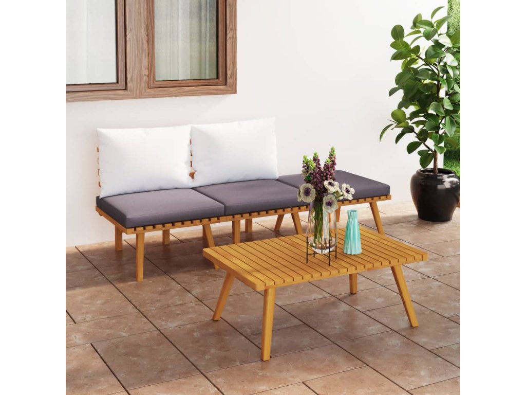vidaXL 4-dielna záhradná sedacia súprava s podložkami akáciový masív