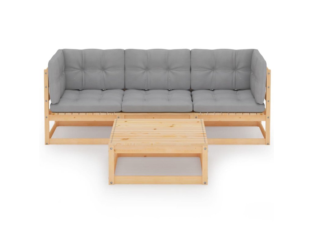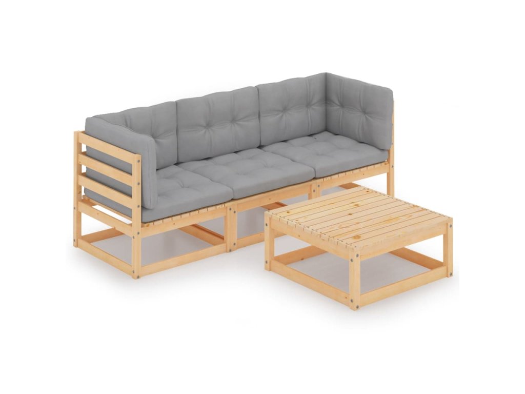 vidaXL 4-dielna záhradná sedacia súprava s podložkami borovicový masív