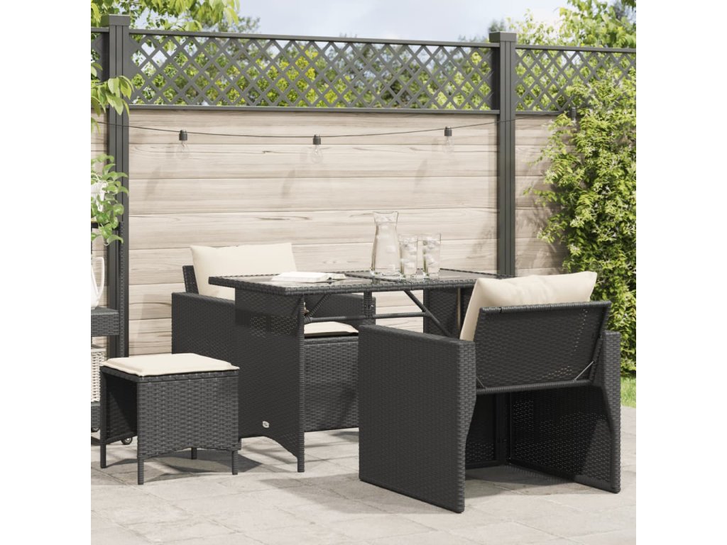 vidaXL 4-dielna záhradná sedacia súprava s podložkami čierna polyratan