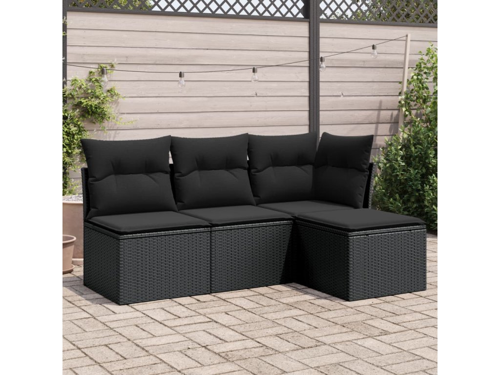 vidaXL 4-dielna záhradná sedacia súprava s podložkami čierna polyratan