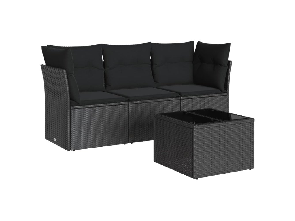 vidaXL 4-dielna záhradná sedacia súprava s podložkami čierna polyratan