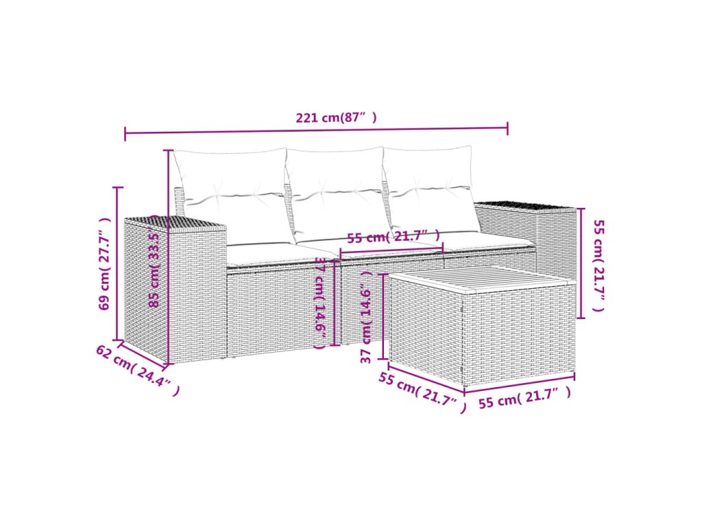 Táto záhradná sedacia súprava je dokonalým doplnkom na váš dvor, terasu alebo verandu, a poskytuje pohodlný a príjemný priestor na rozhovory s rodinou a priateľmi alebo jednoducho na relaxáciu a užívanie si pobytu vonku.