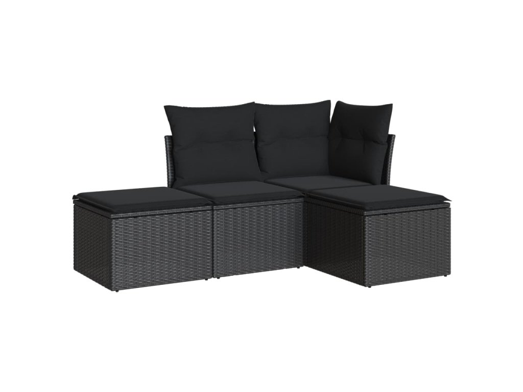 vidaXL 4-dielna záhradná sedacia súprava s podložkami čierna polyratan