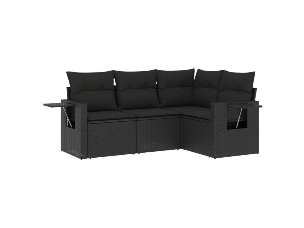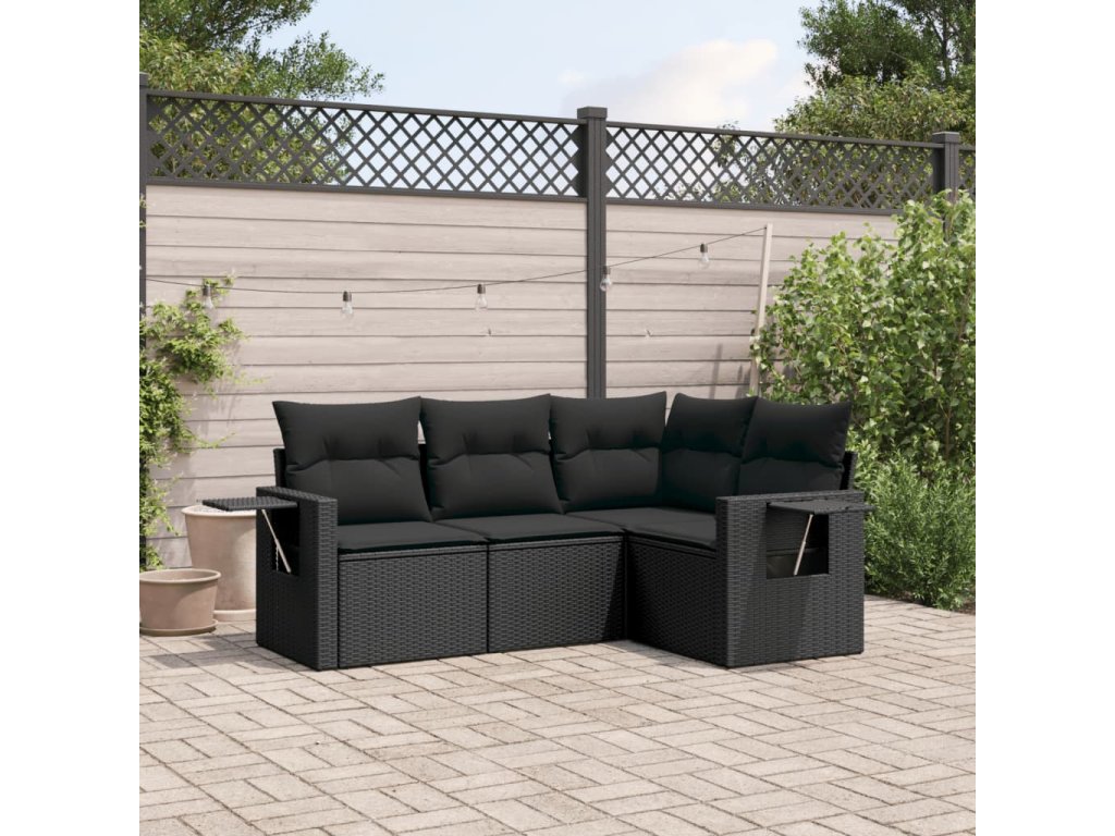 vidaXL 4-dielna záhradná sedacia súprava s podložkami čierna polyratan
