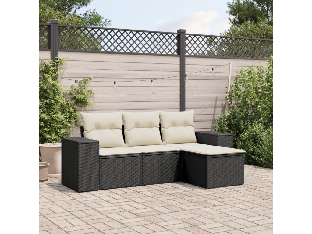 vidaXL 4-dielna záhradná sedacia súprava s podložkami čierna polyratan