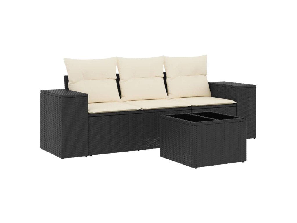 vidaXL 4-dielna záhradná sedacia súprava s podložkami čierna polyratan