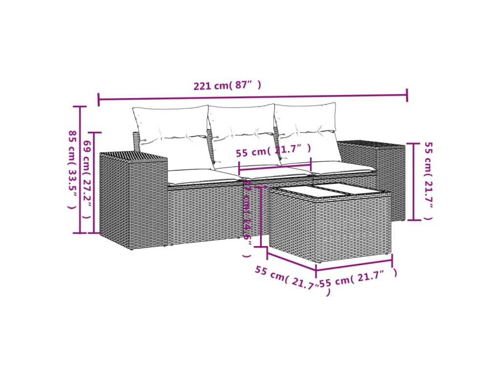 Táto záhradná sedacia súprava je dokonalým doplnkom na váš dvor, terasu alebo verandu, a poskytuje pohodlný a príjemný priestor na rozhovory s rodinou a priateľmi alebo jednoducho na relaxáciu a užívanie si pobytu vonku.