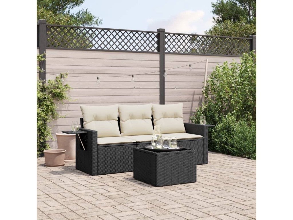 vidaXL 4-dielna záhradná sedacia súprava s podložkami čierna polyratan