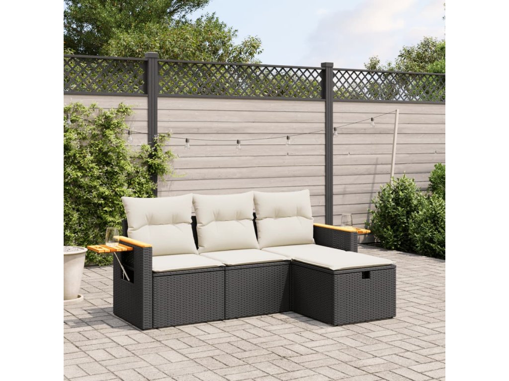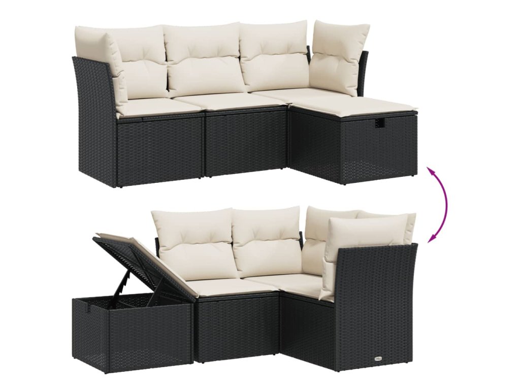 vidaXL 4-dielna záhradná sedacia súprava s podložkami čierna polyratan