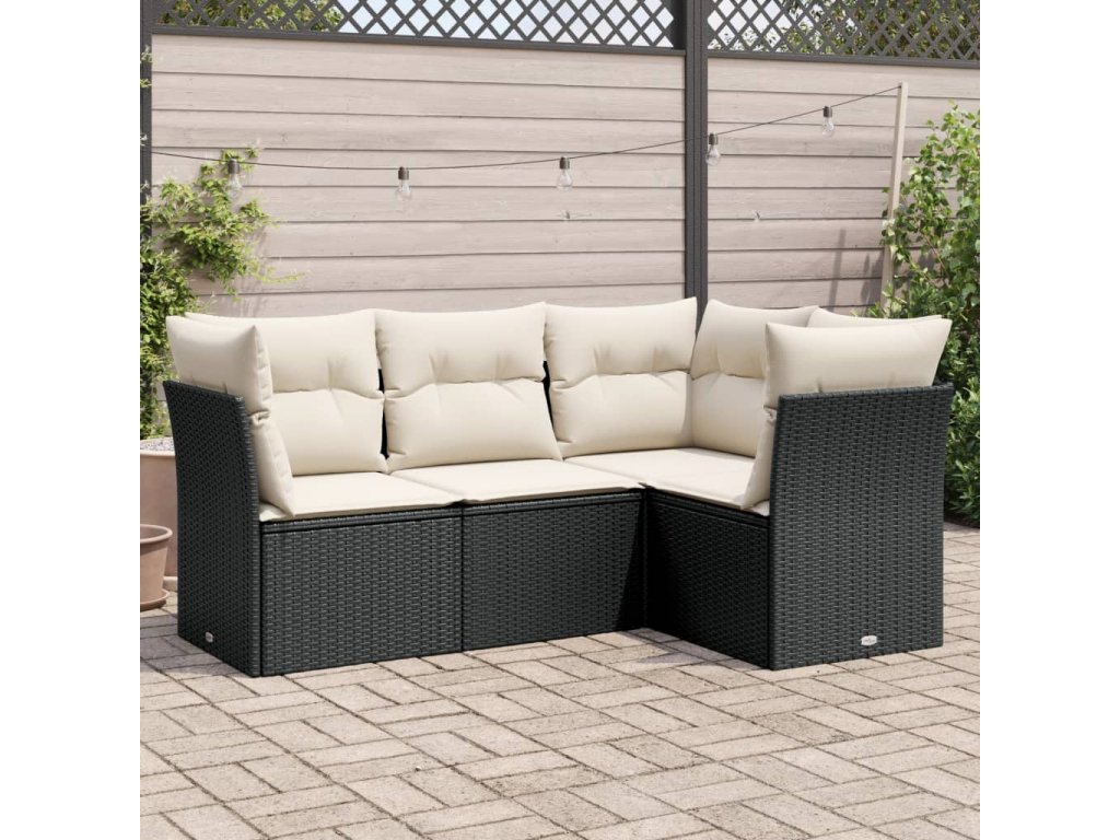 vidaXL 4-dielna záhradná sedacia súprava s podložkami čierna polyratan