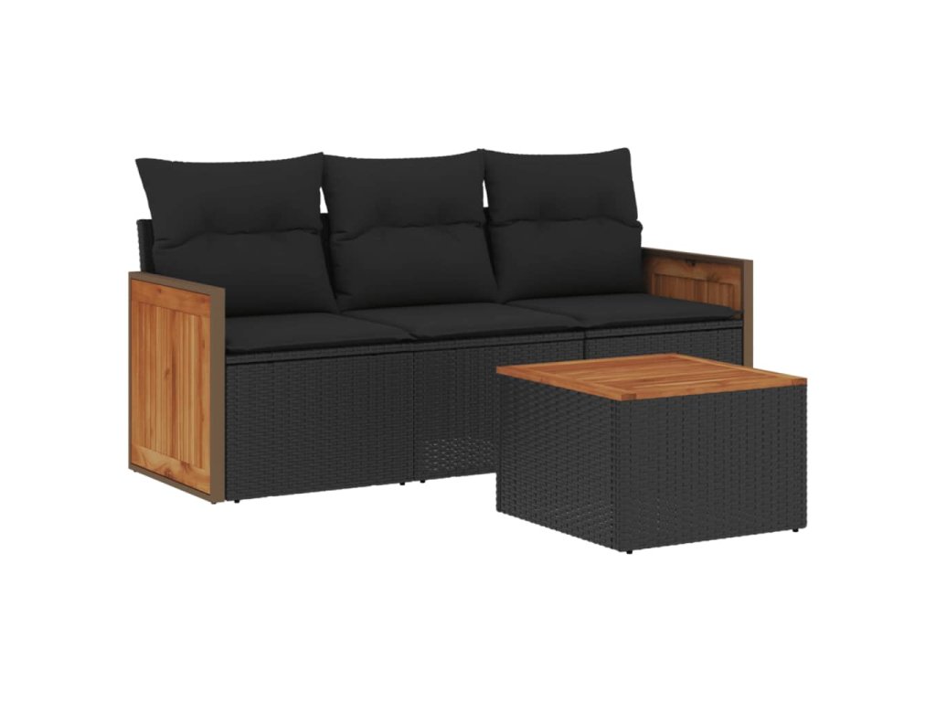 vidaXL 4-dielna záhradná sedacia súprava s podložkami čierna polyratan