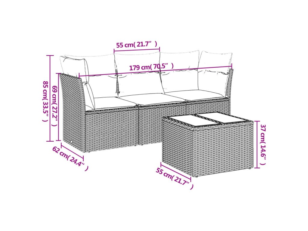 Táto záhradná sedacia súprava je dokonalým doplnkom na váš dvor, terasu alebo verandu, a poskytuje pohodlný a príjemný priestor na rozhovory s rodinou a priateľmi alebo jednoducho na relaxáciu a užívanie si pobytu vonku.