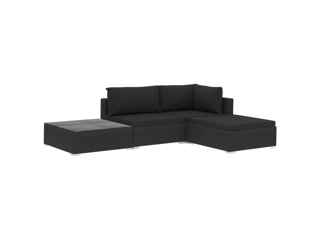 vidaXL 4-dielna záhradná sedacia súprava s podložkami,polyratan,čierna