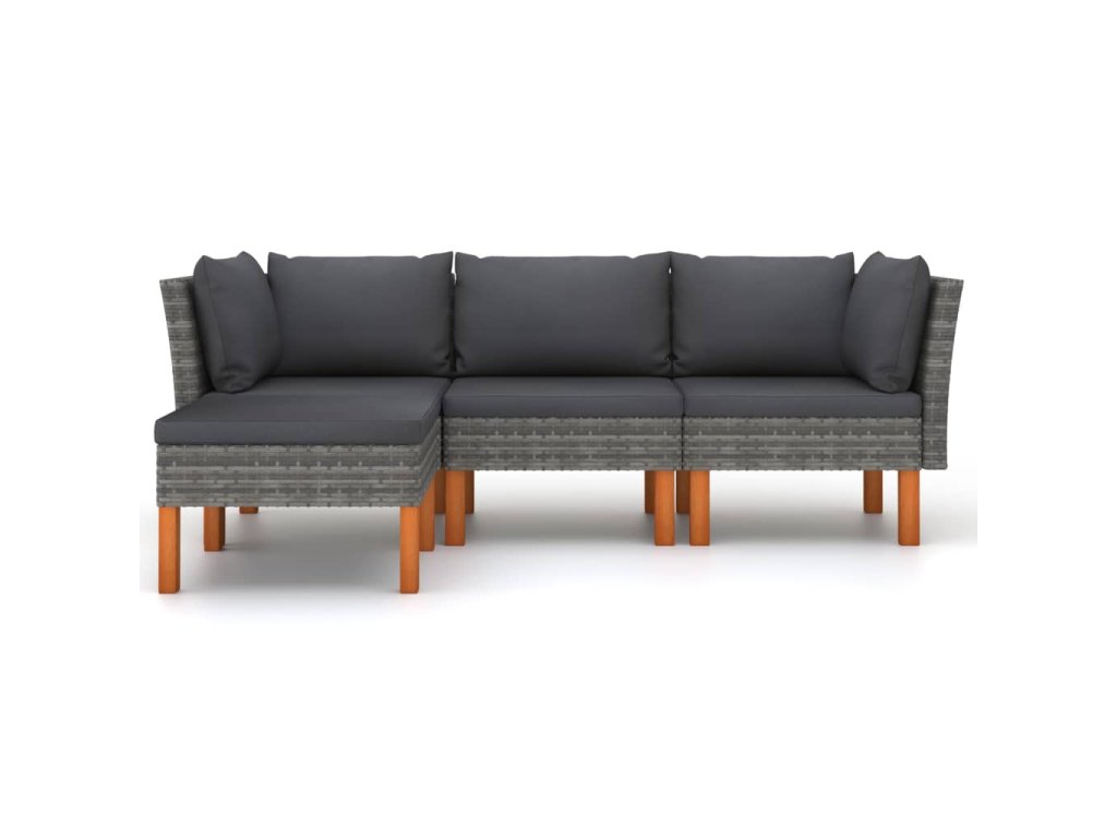 vidaXL 4-dielna záhradná sedacia súprava s podložkami polyratan sivá