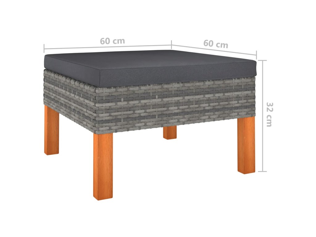 - Materiál: PE ratan, práškovaná oceľ, masívne eukalyptové drevo s olejovým náterom