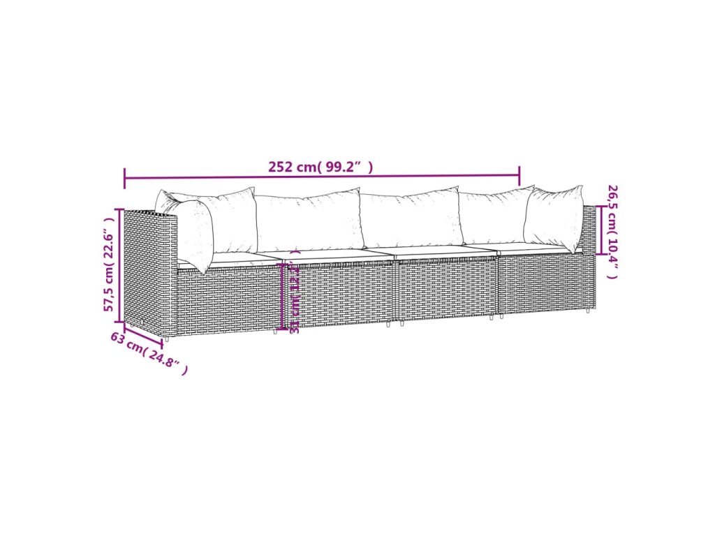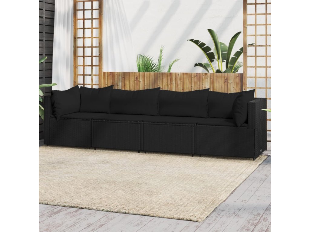 vidaXL 4-dielna záhradná sedacia súprava s vankúšmi čierna polyratan