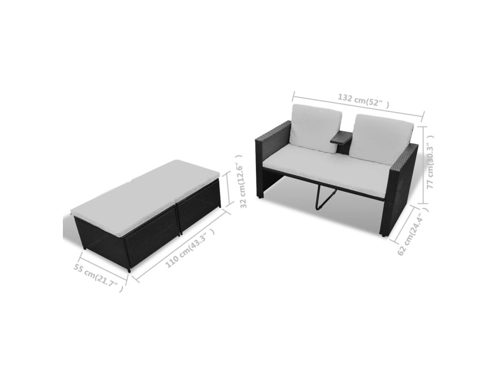 Táto štýlová ratanová súprava pozostáva z dvojmiestnej pohovky a dvoch podnožiek, ktoré vám poskytnú ideálne miesto, kde si budete môcť vychutnať dokonalý odpočinok počas posedení na záhrade či na dvore.
