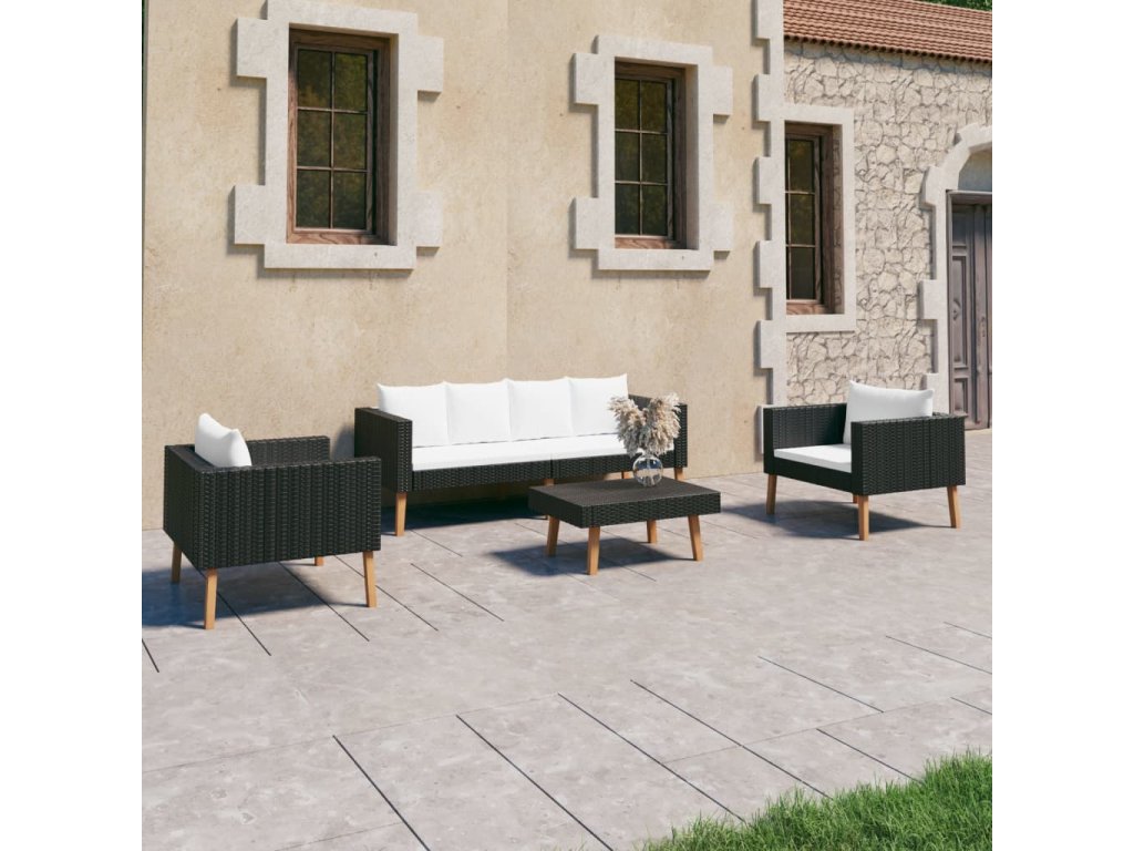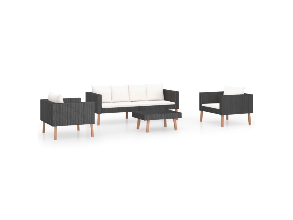 vidaXL 4-dielna záhradná sedacia súprava s vankúšmi čierna polyratan