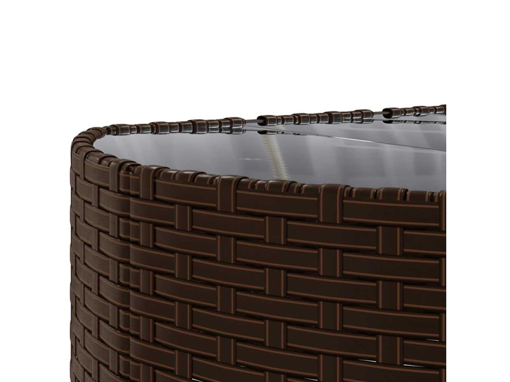 - Materiál: PE ratan, oceľ s práškovou povrchovou úpravou, tvrdené sklo
