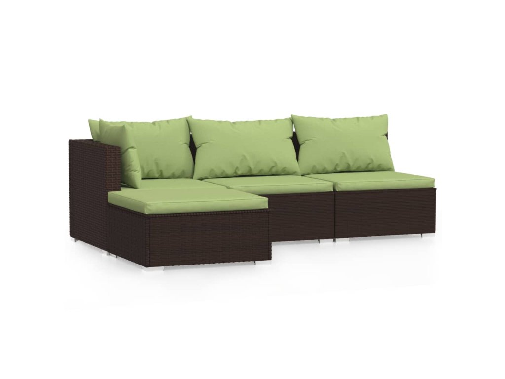 vidaXL 4-dielna záhradná sedacia súprava s vankúšmi hnedá polyratanová